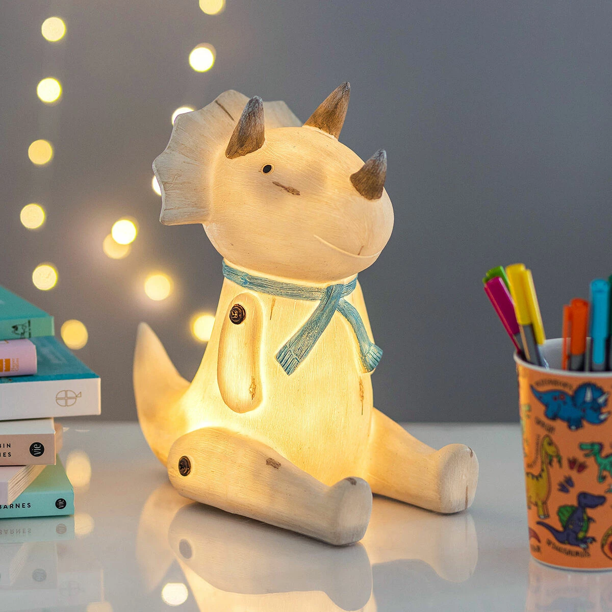This adorable Triceratops dino light is a great way to add a soft and ambient glow of light to a kid’s bedroom. Ideal for using as a night light at bedtime or as a friendly light to calm and soothe a child whilst reading.