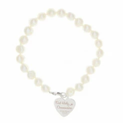 Personalised First Holy Communion Swirls & Hearts White Freshwater Pearl Bracelet