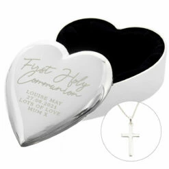 Personalised First Holy Communion Heart Trinket Box & Cross Necklace Set