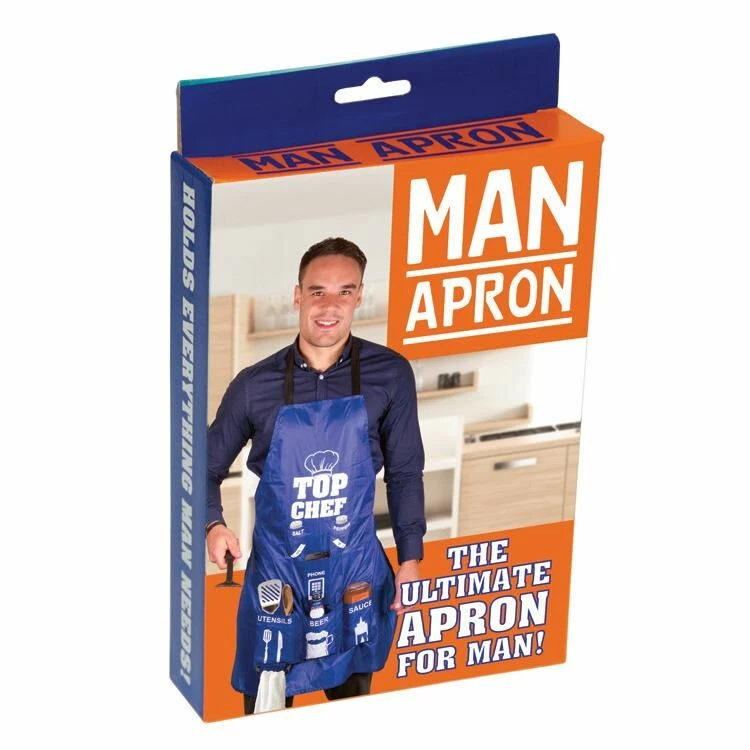 Do you know someone who considers themselves to be the ultimate man? Then why not gift them with this MAN APRON, the ultimate chef’s accessory in the kitchen for that ultimate manly feeling!