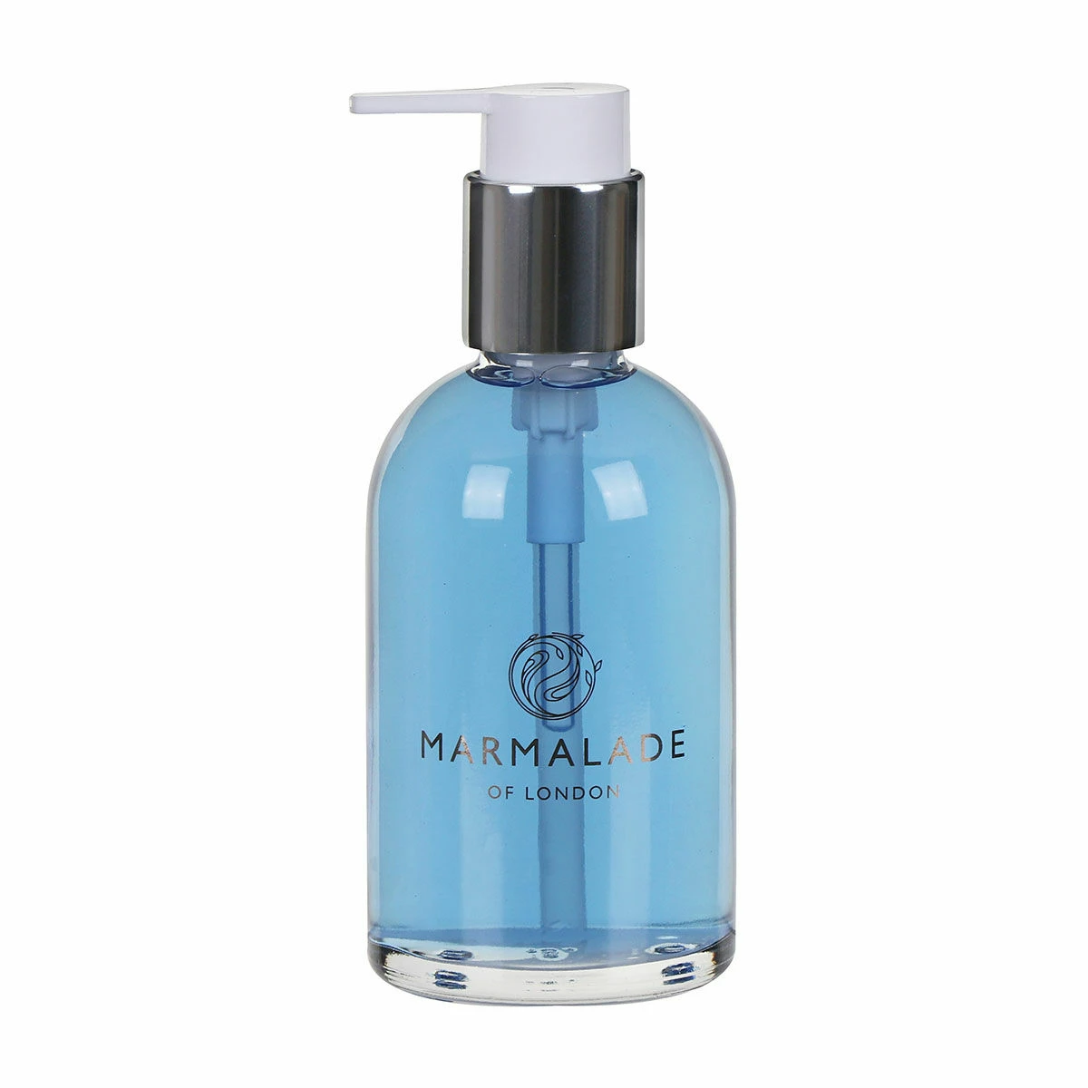 Containing 200ml of blue hand and body wash, the clear glass bottle features a white and silver pump for easy dispensing. The simple, sleek design is completed with the Marmalade of London logo across the front of the vessel. This hand and body wash comes with a gorgeous navy decorative box with a stylish single stripe down the front, topped with a metal lid, perfect for gifting. It is sure to add a touch of class to your kitchen or bathroom sink and would a beautiful gift for a friend or loved one.