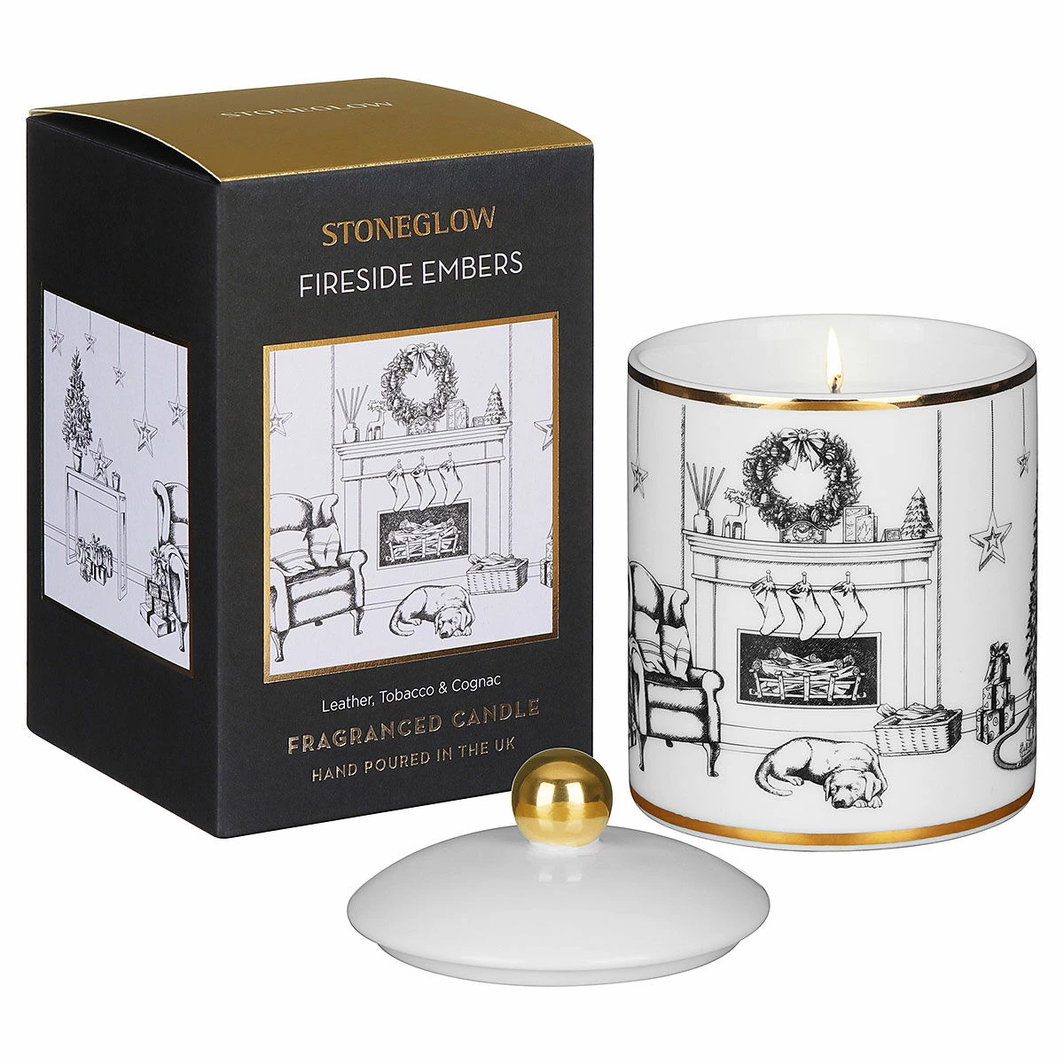 Stoneglow Keepsake Fireside Embers Leather, Tobacco & Cognac Ceramic Jar Candle