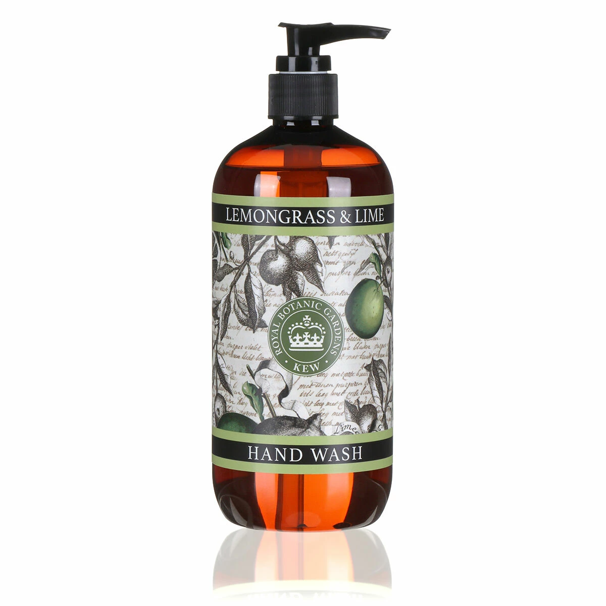 Gently wet your hands and apply a small amount of soap. Massage the soap into your hands creating a rich lather. The soap emits delicate aromas consisting of lavender and rosemary inspired by the Royal Botanic Gardens, Kew. This luxury soap is enriched with aloe vera and vitamin E which will nourish your hands. The liquid soap comes in a dark bottle with vintage floral images of old text and lemons and limes. Completed with the Royal Botanic Gardens, Kew logo in the centre.