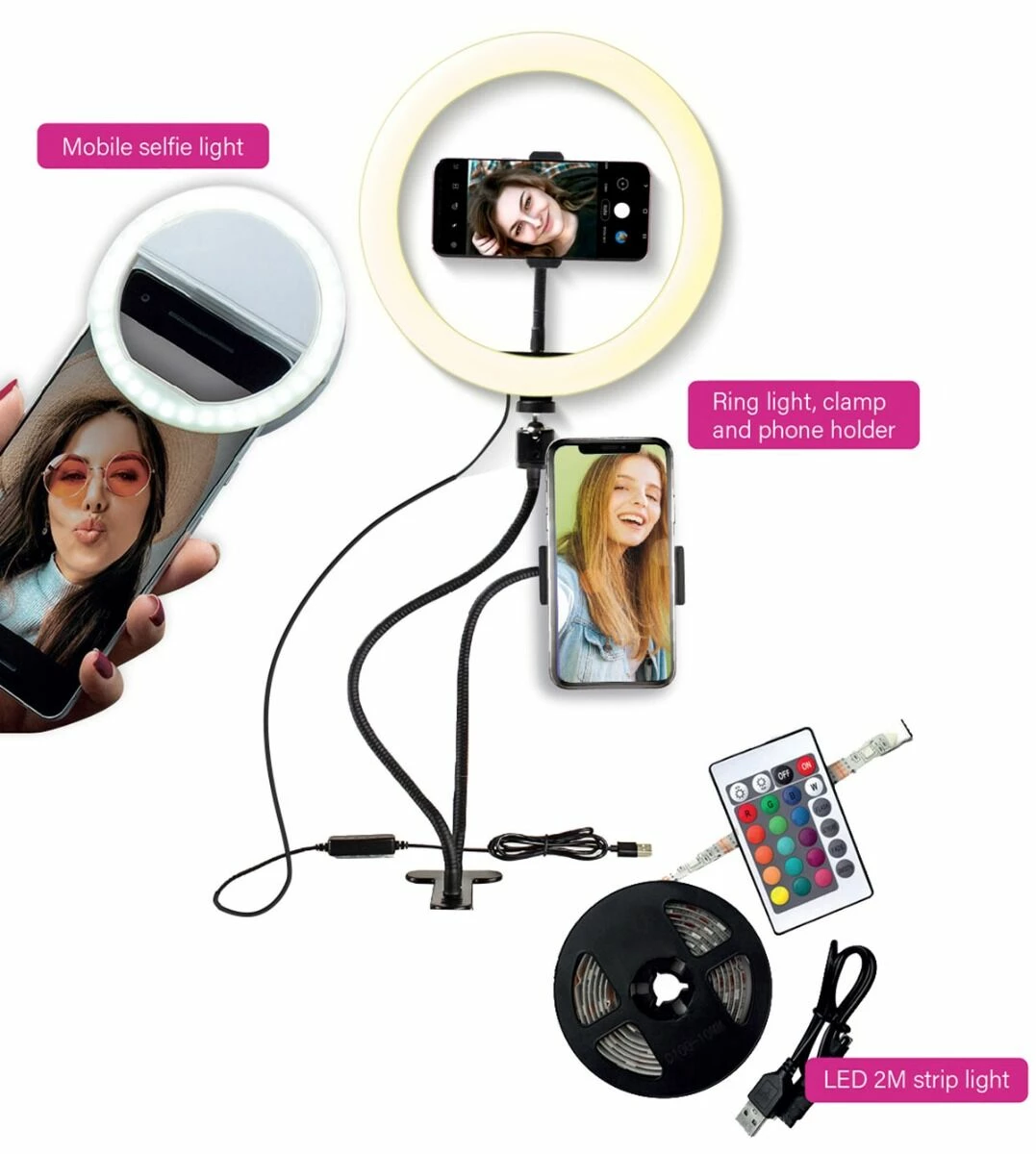 - Smartphone Clip-On Selfie Light for perfectly lit photos on the go.