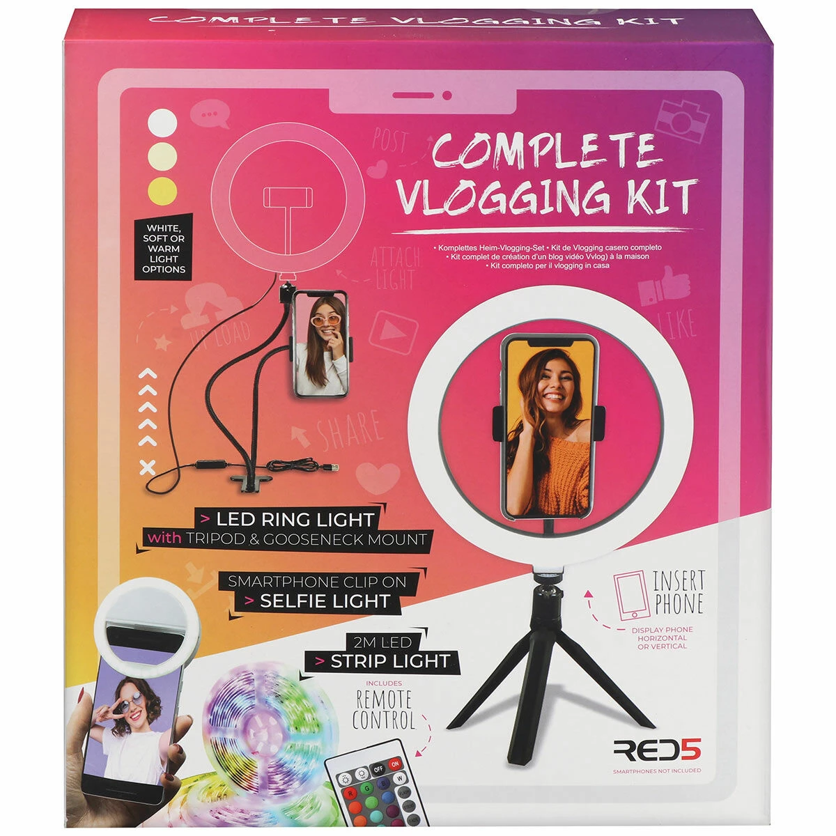 Perfect for any flourishing vlogger, this convenient and comprehensive kit allows you to easily create professional looking photos and video from your smartphone in the comfort of your own home and when you’re on the move.