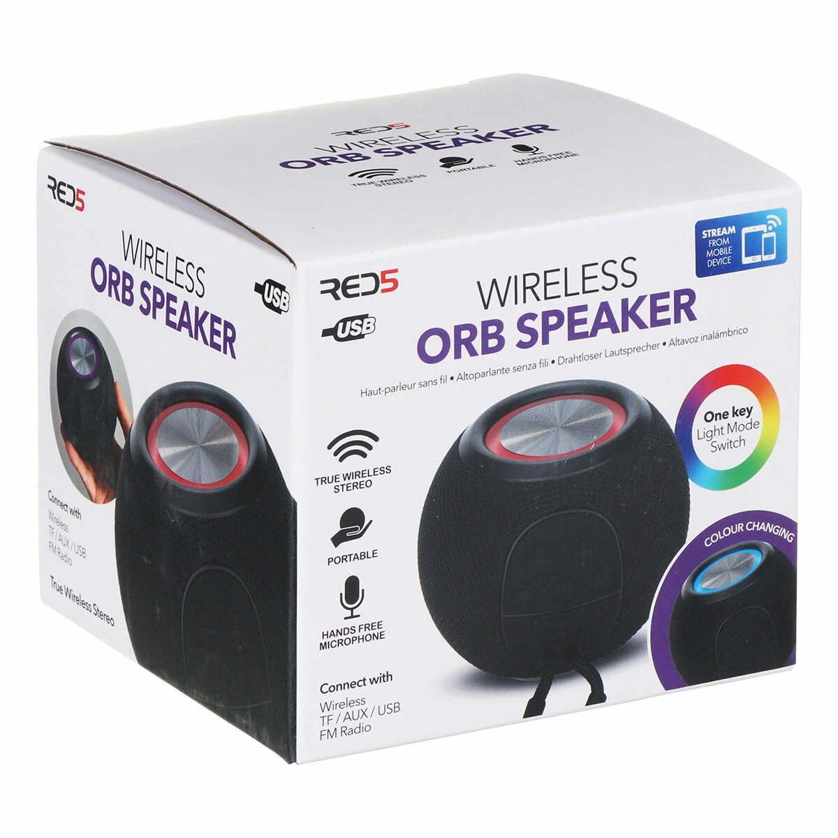 The Source Red5 Wireless Black Colour-Changing Orb Speaker