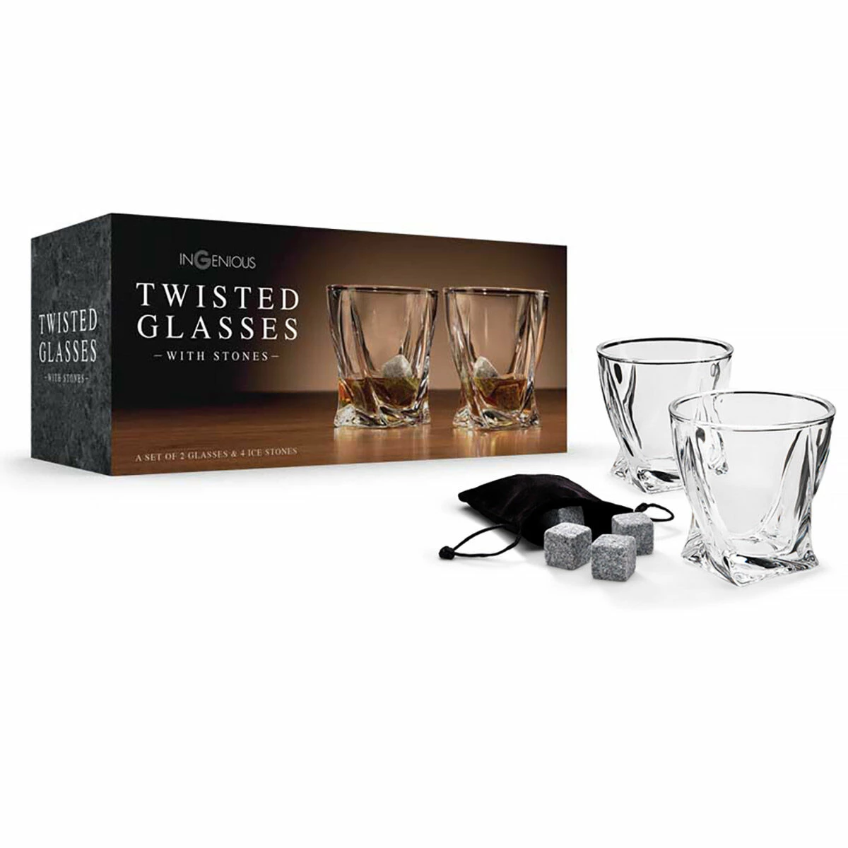The set comes with two twisted glasses and a pouch with four ice stones. They’re perfect for serving your favourite spirits or liquors such as whisky, rum, cognac or gin.