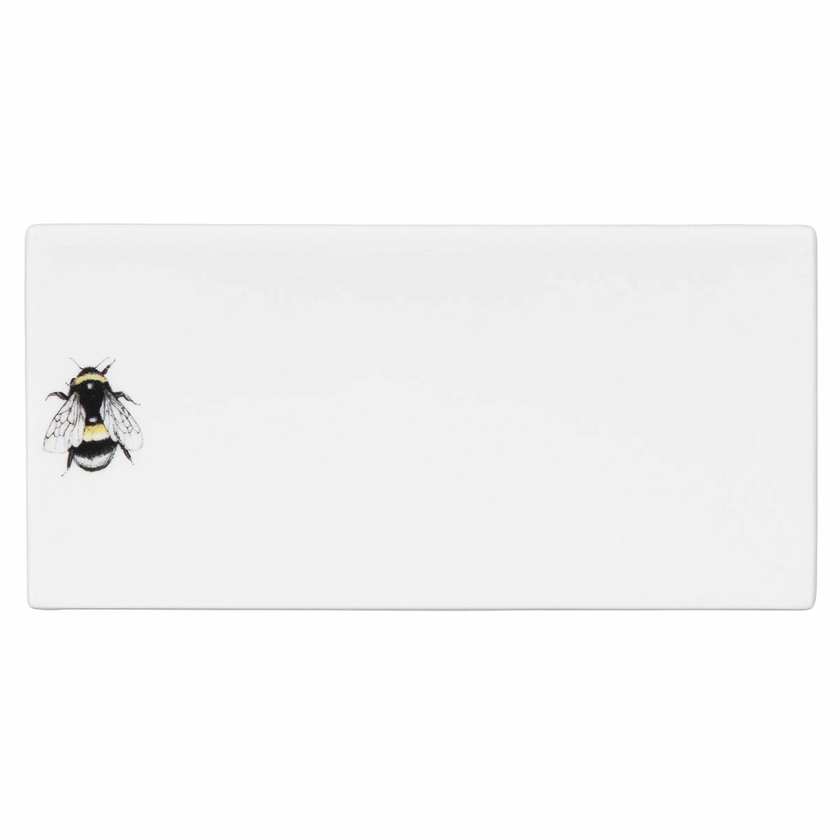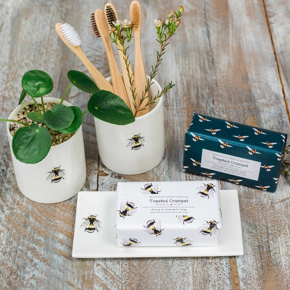 The lefthand side of the soap dish features a dainty watercolour illustration of a bumblebee that stands out beautifully against a crisp white background. The superb print quality captures the fine detail and vibrant colours of each hand-drawn design.