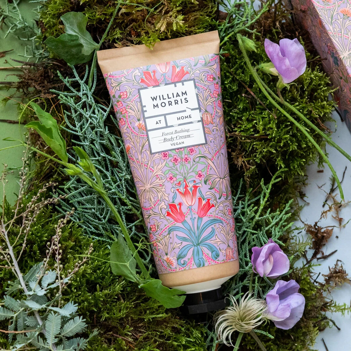 This delicately fragranced body cream comes in a 200ml tube with black screw cap and the tube features the ‘Woodland Weeds’ pattern featuring medieval millefleur that William Morris was so fond of interspersed with a late Victorian repeating scroll form. The decorative tube of cream comes in a matching box making it ideal to give as a gift for birthday, Christmas or as a way to say thank you, or even a treat for yourself!