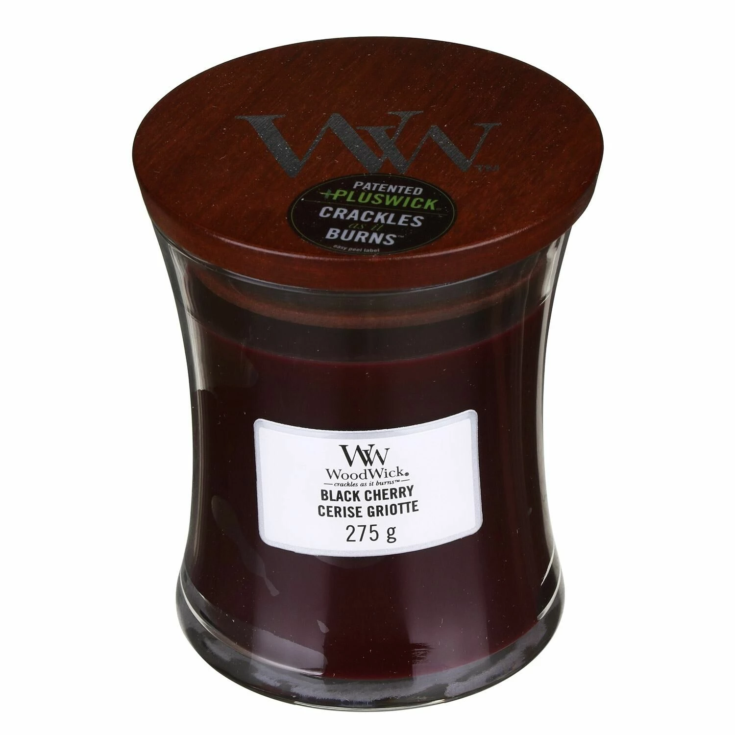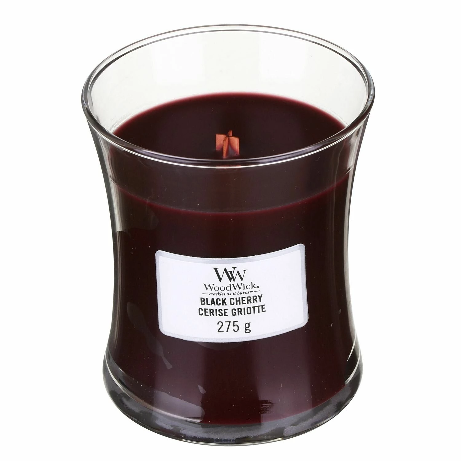 Fill your home with the succulent scent of Black Cherry with this lovely Hourglass candle from WoodWick. The candle is a deep purple colour reminiscent of the colour of the fruit. The delightful aroma is complimented by the distinctive shape of the candle holder which is an hourglass shape