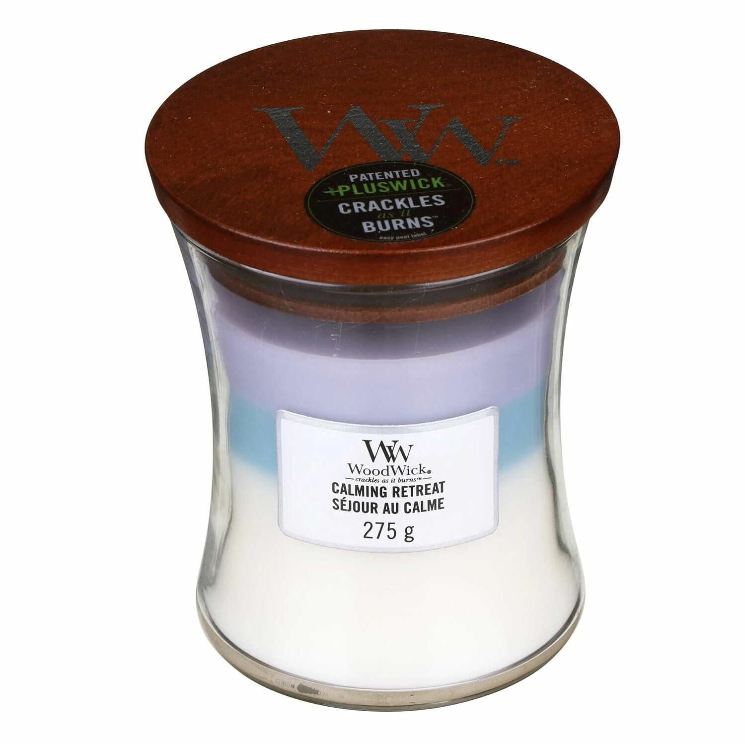 This beautifully scented Trilogy candle from WoodWick employs three key scents, and uses a wick made from organic wood which burns with the sound of a crackling fire, creating a sense of total relaxation. As the candle burns, the different coloured layers of the candle melt into each other, creating a sensuous blend of fragrances that will keep your senses content and pampered. Complementing the relaxing fragrance is the distinctive shape of the candle holder which gently flares at the base and the rim and is made of sturdy glass.