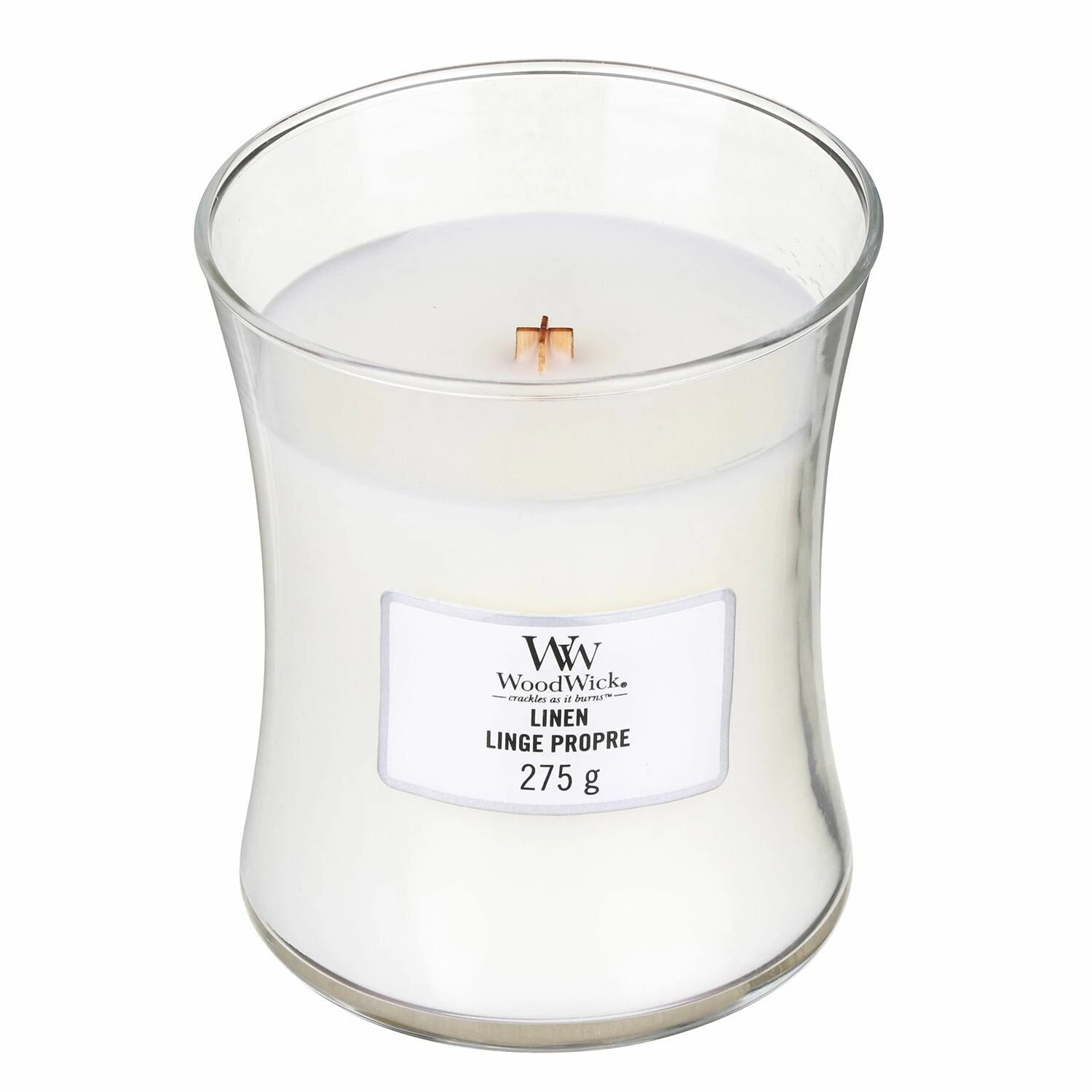 This ivory coloured candle from Woodwick is scented with the comforting fragrance of clean, fresh laundry drying in a soft summer breeze. The refreshing scent is complimented by the unique shape of the candle holder, which is an hourglass shape