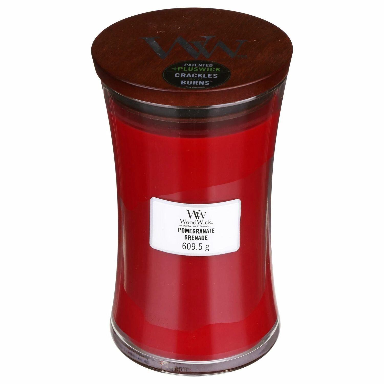 Fill your home with the succulent scent of Pomegranate with this lovely Hourglass candle from WoodWick. The candle is a deep red colour reminiscent of the colour of the fruit. The delightful aroma is complimented by the distinctive shape of the candle holder which is an hourglass shape.