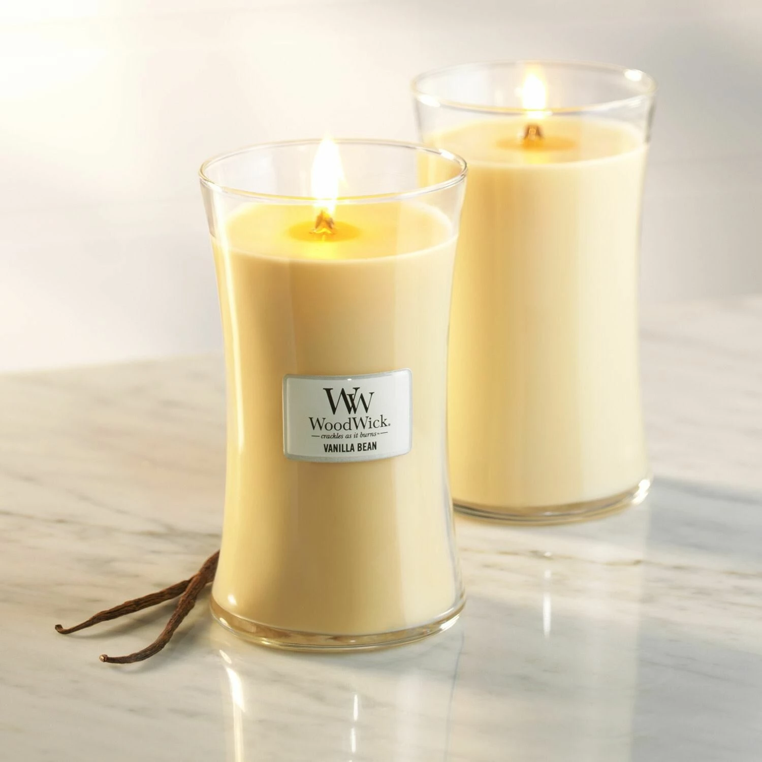 Fill your home with the soothing scent of Vanilla Bean with this attractive Hourglass candle from WoodWick. The delicious aroma is complimented by the distinctive shape of the candle holder which is an elegant hourglass shape.