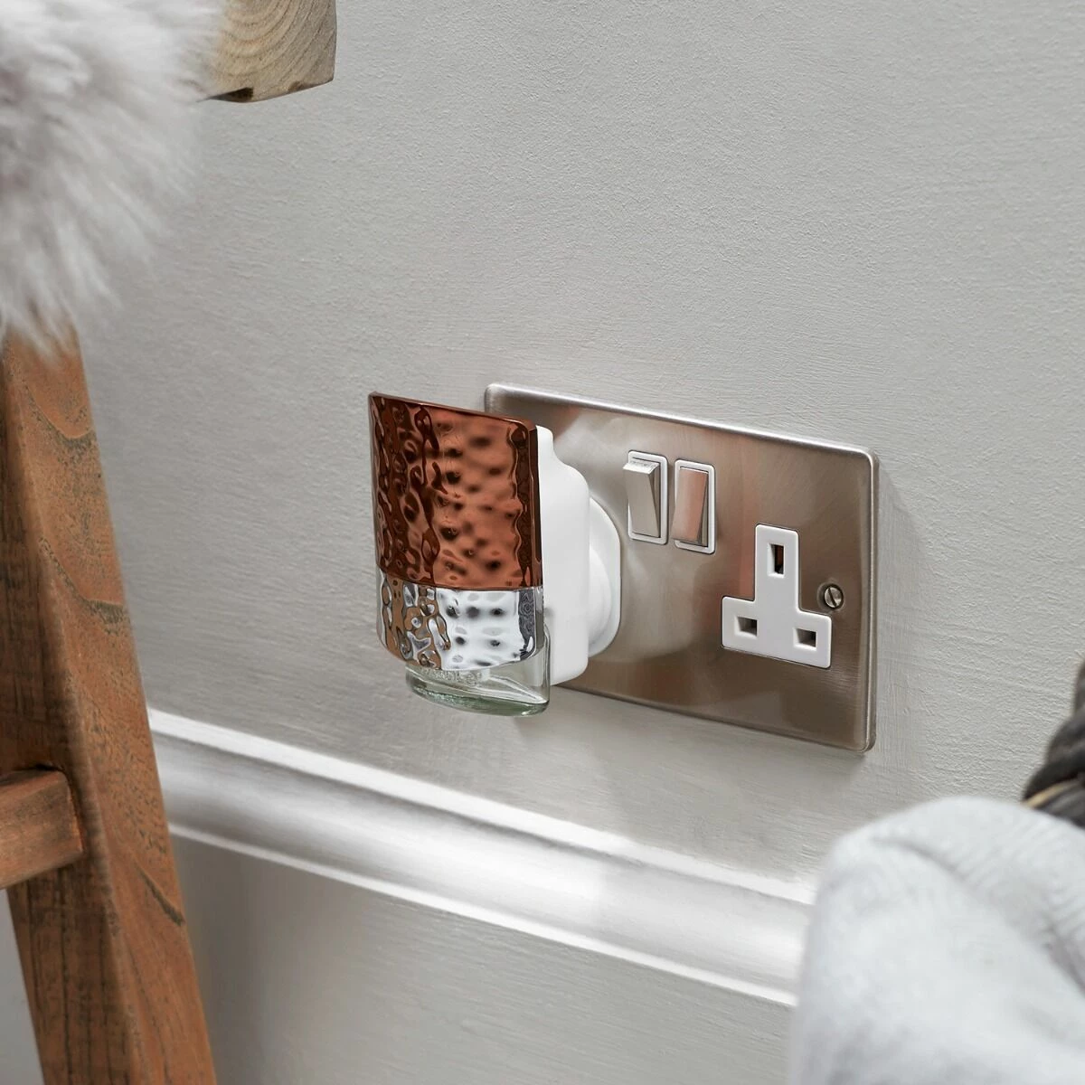 This design in ‘Faceted’ features chrome silver and copper colours in a hammered metal effect meaning that your scent plug blends in and compliments any room décor! So you can put it anywhere in any room you choose, be it the bedroom, bathroom or living room.